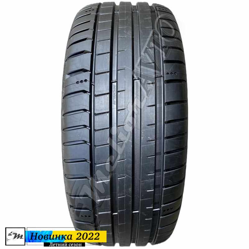 - Новый ассиметричный рисунок протектора: внешняя сторона с более жесткими блоками для уверенного сцепления на сухом покрытии; внутренняя сторона с большей долей негативного профиля для максимального сцепления на мокром покрытии;
